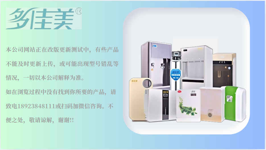 深圳市多佳美净水科技有限公司成立于1998年,多年来一直专注于研发家用净水、商用净水等系列产品。主营厨房净水系统、校企直饮水设备、直饮水机租赁、净水设备的售后维护等,产品获得多项国家专利,并多次在“中国国际高新技术成果交易会”展出,近年来与深圳市科协携手开展“科普进社区”活动,产品广受大众好评。 本公司通过ISO9001质量体系认证,产品通过了国家3C认证、省级涉及饮用水卫生安全产品卫生许可批件,参与制定并发布了六个行业的相关标准。与行业内多个品牌建立战略合作关系,服务于南方科技大学、深圳北理莫斯科大学、深圳市第三人民医院、深圳市儿童医院、深圳实验学校、深圳市第二高级中学深汕实验学校、艺术高中、观澜中学、翠北实验小学、南方电网集团、中国电信深圳宝安区各营业厅、粤电集团、左右家私、大族激光等直饮水项目,为企业、学校提供优质安全的饮用水。 多佳美兢业26年,在产品技术上不断追求创新、品质稳定;将客户的满意度放在首位。 全国已覆盖数百个安装服务网点,可为客户提供及时、贴心的售后服务。...